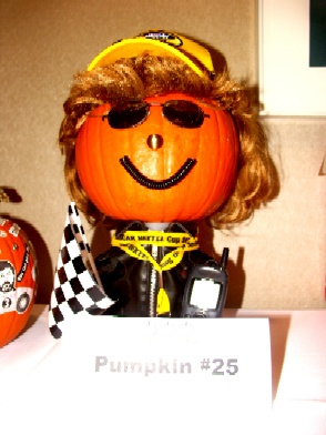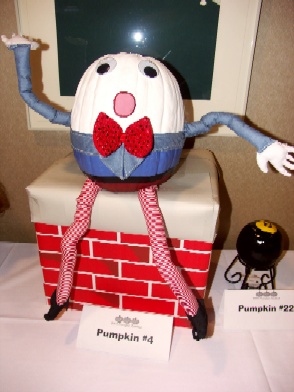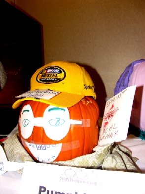 美国是个没大没小的国家。大人在家里成天看卡通片一点也不奇怪。大人去享受小孩子的快乐是理所当然的事。要说美国人喜欢 “偷闲学少年”还不如说他们根本就没有长大。其实,长大有长大的烦恼,不长大有不长大的乐趣。人们要是都太成熟了,可能麻烦会更多。跟有“孩子气”的大人们在一起,总是有很多的愉快的。人们偶尔忘记自己的年龄和身份,回到儿时的天真烂漫中去,也是一种放松。这不,本人就职的公司各单位里都常有这种“放松。”其中最好玩的项目之一,就是本单位一年一度的鬼节南瓜装饰比赛 - 比赛谁会把南瓜装饰点缀的最好看。奖励自然是由公司出的。头等大奖100元,二等奖50元,三等奖30元。十月初发放南瓜,各个参赛员工领走,十月中评比。本单位在公司里是个小角落,不过百来人,而且以工程类傻瓜居多。今年搞得不如去年精彩,但是仍然有不少“优秀作品。”以下就是其中几份展品