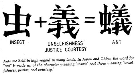 mentioned that, in Japanese, the characters meaning "ant" also include