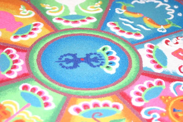 今天去看西藏文物展,好多mandala啊,画的我就没拍,拍了两个特殊的mandala, 还有一个像糖葫芦一样插在圆盘上的mandala,管理员盯着,没好意思拍。