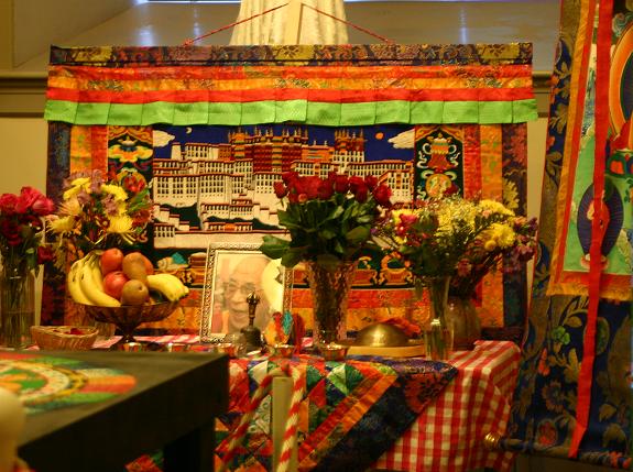 竖有达赖像的供台