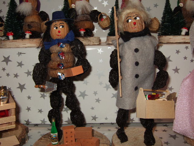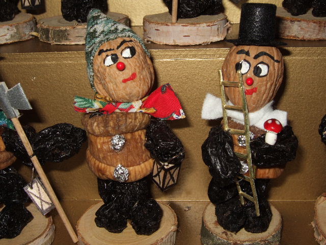 圣诞市场上卖的干李子小人,头是核桃,身子是干无花果,黑黑的胳膊和腿是干李子。