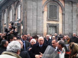 - 2007年第一天,我在意大利的那坡里斯,早上起来,和妹妹去一个有名的咖啡店喝咖啡。一到门口,发现所有的人都拥到了一辆小车前。我们也跟着去看,原来是意大利新当选的总统纳波利塔诺。 俺也作了一回狗仔队 :)