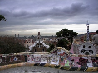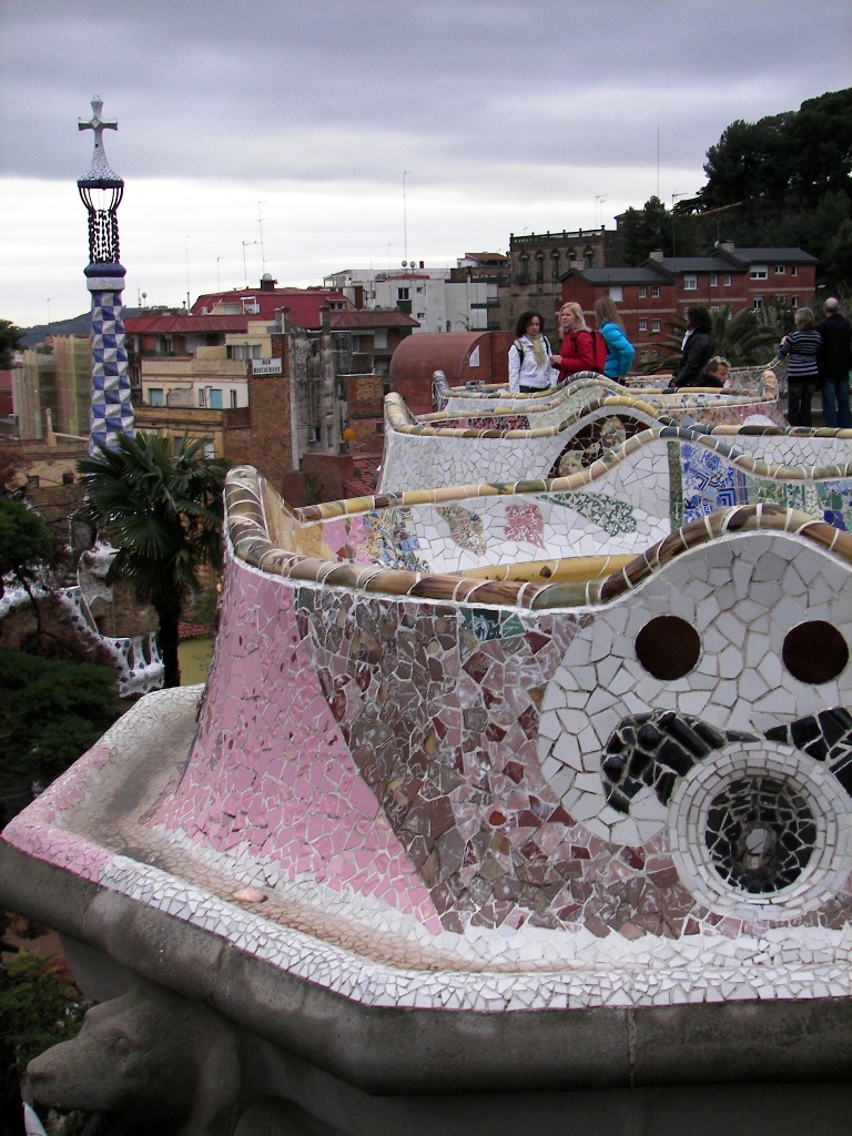 很显然,巴塞罗那是高迪的,有游人的地方就有捕捉高迪留下的痕迹。下雨,还在下雨,不大,但春雨显然不是为浪漫而下。雪儿的车票订在今晚,今天只有匆匆地看Park Grüell和奥体馆的时间了。
