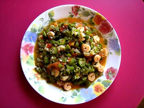 象所有好汤一样, gumbo 做起来不难, 只是需要时间. 下面的照片不是我的, 我借用说明.做法和我做的基本一样. 先来一点简单的介绍. gumbo(读做’刚饱’) 是两种浓浓的南美汤饭中的一种. 另一种叫做etouffee(读做’一头飞’, 或’艾头飞’). 秋葵,由于其粘性, 是做这两种浓汤的好原料. 但仍然需要面粉让汤真正浓浓的. 一般人不知道这两道菜的区别. 只知道在餐馆’一头飞’一般作为正餐(main dish), ‘刚饱’作为头台.