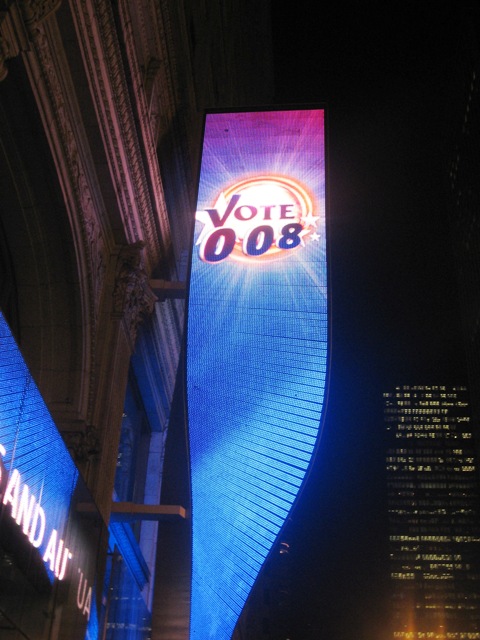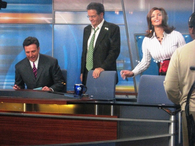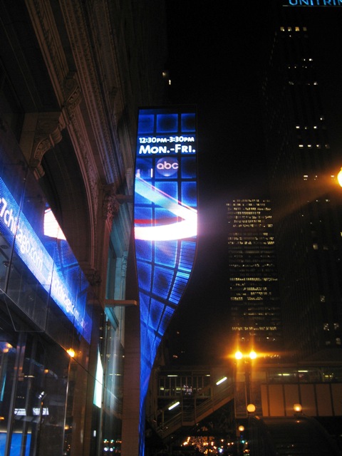 - 下班,路过downtown的abc媒体公司大楼,正好几个本地最著名的播音员在玻璃大厅里播晚间新闻,这也是芝加哥的一大特色,著名的电视台都在市中心的玻璃房里作新闻,过路的观众就在外面看。抢了几张照片。